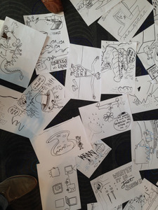 - Play a certain music during the doodling; I played Christmas songs once and we ended up with interesting holiday postcards