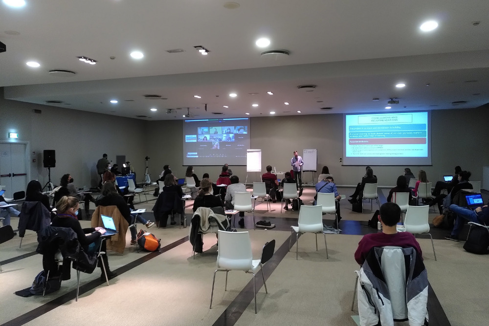 Some of the limitations in how we could work together were frustrating because some things would just not work in a hybrid setup. The venue was sadly not great for group work as we had no extra rooms, just several lobby-like spaces which were neither undisturbed nor adequately equipped.