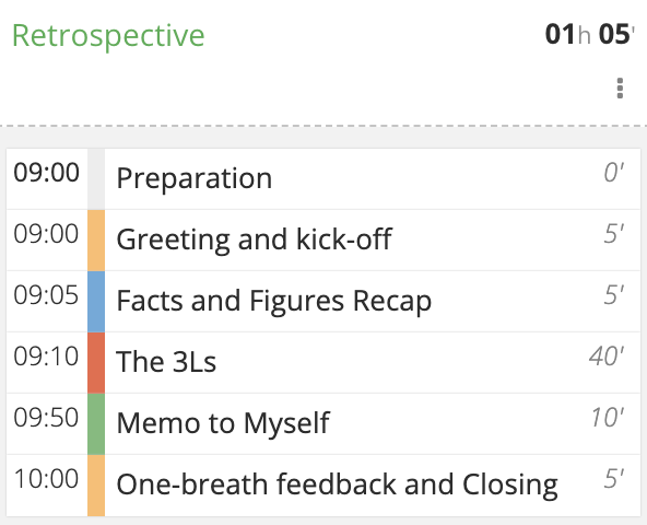 In SessionLab, for example, you can create a meeting agenda template or simply duplicate your session so you don’t have to start from scratch every time.