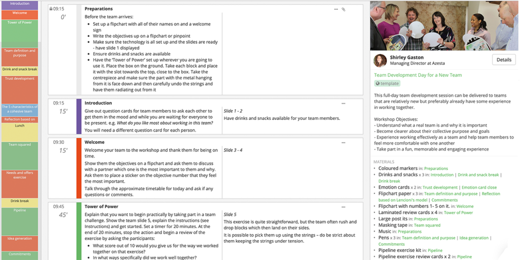 Making your agenda into a reusable and editable template is the first step to iterating and improving and is made easy in SessionLab too!