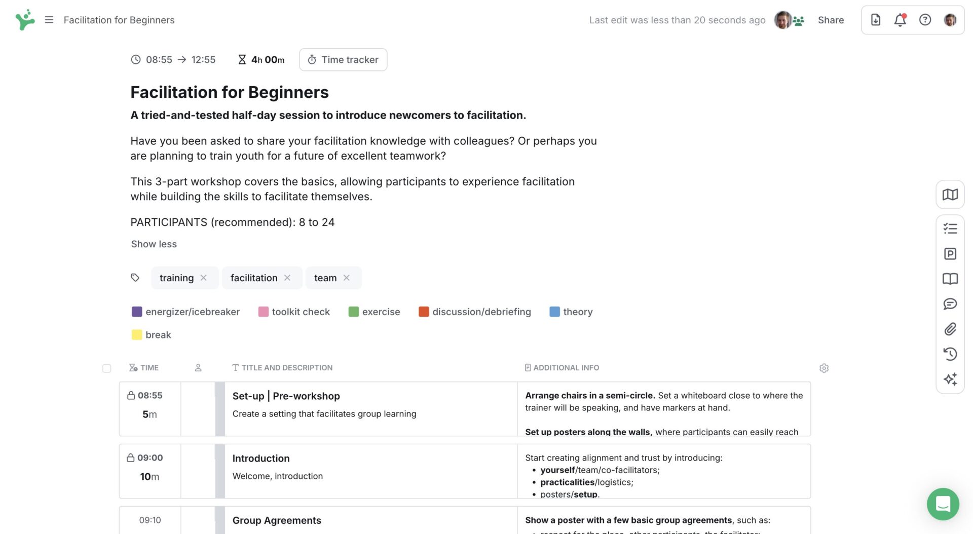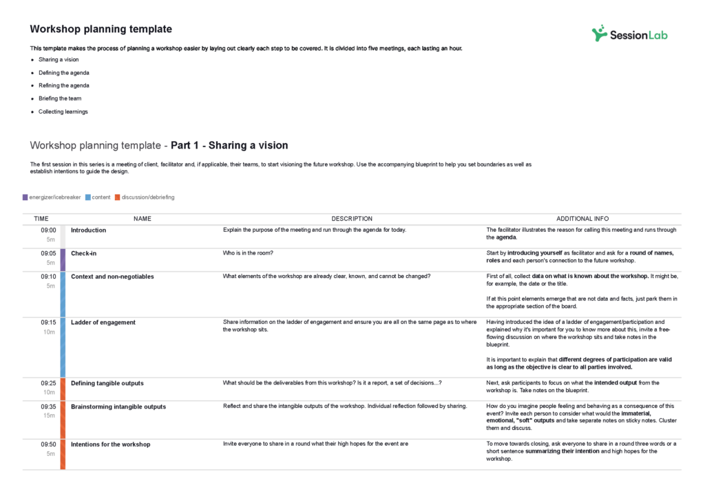 Check out the accompanying workshop planning template in SessionLab to kickstart your process with an easy to follow agenda that will help you design your next workshop too!