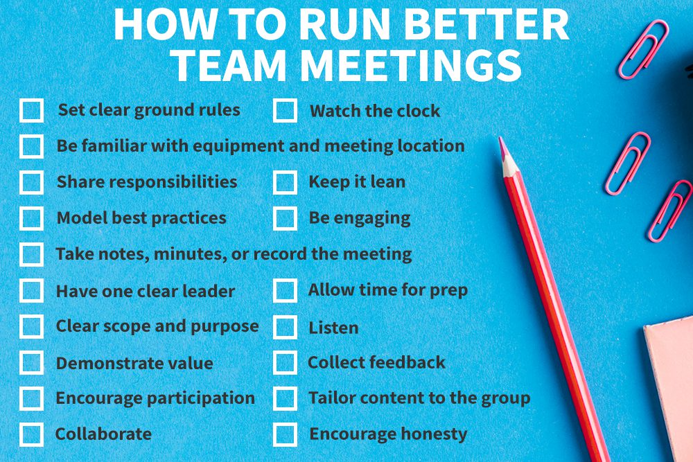 Every meeting you run with your team should be an opportunity for collaboration, discussion, and conversation: all items that contribute to building a strong and effective team.
