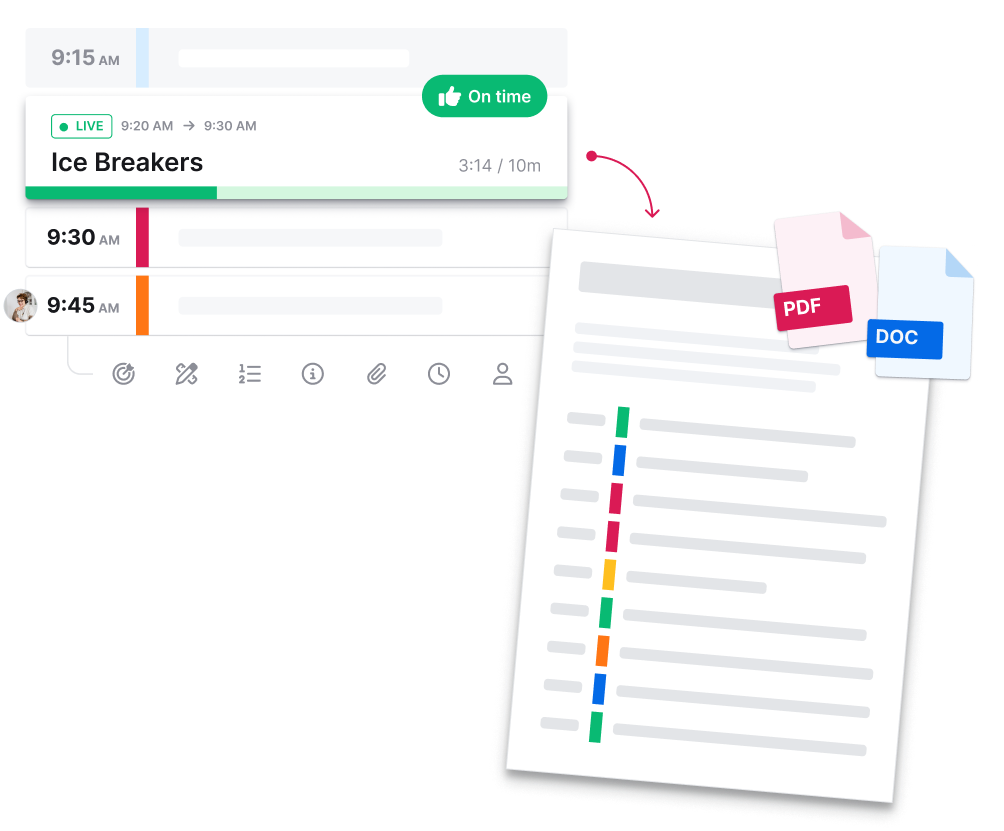 When you’re ready for feedback, invite your collaborators and clients to refine your agenda. On the day of the meeting, create beautiful meeting materials by customizing a printout to your needs.