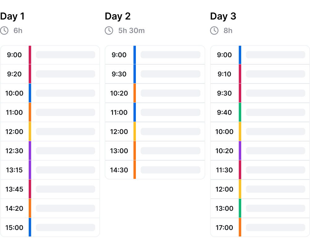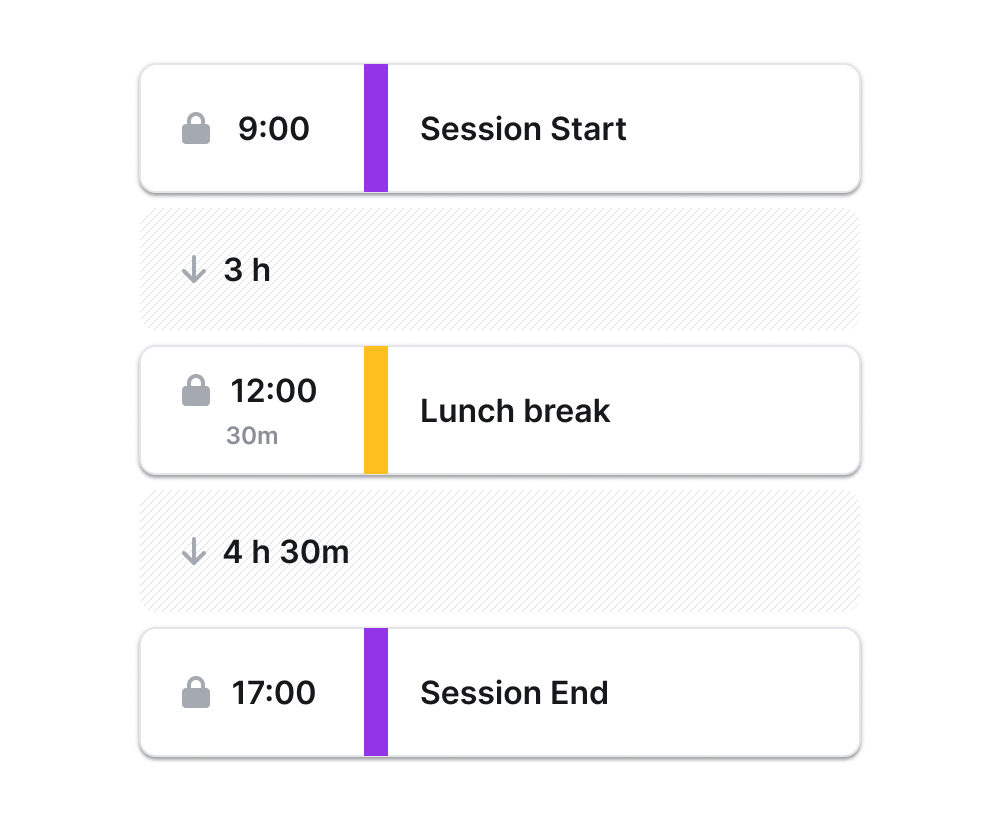 Drag, drop and reorder blocks to design your agenda in minutes. Start with a general outline, then add details and instructions to flesh out your session.