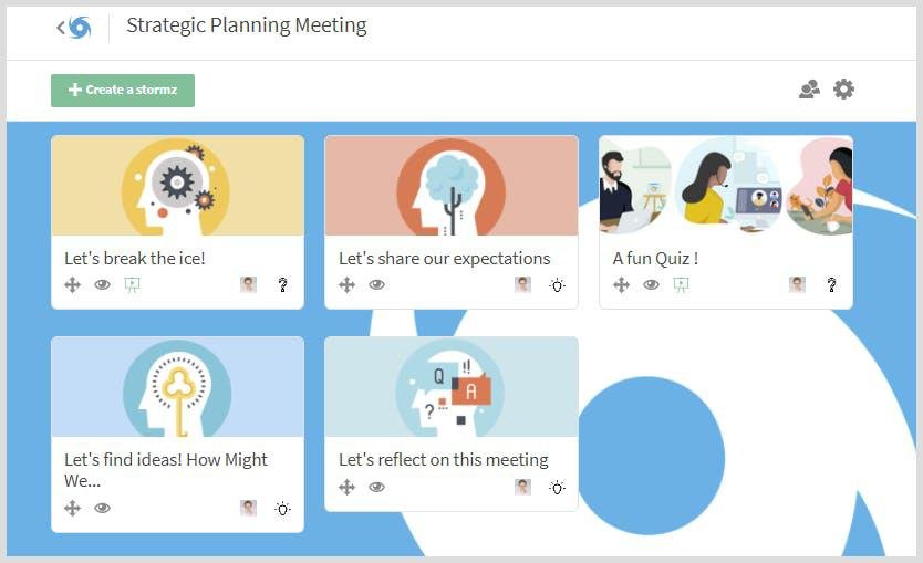 Stormz is an app for professional facilitators. It enables you to design and facilitate digital and live workshops in one platform.