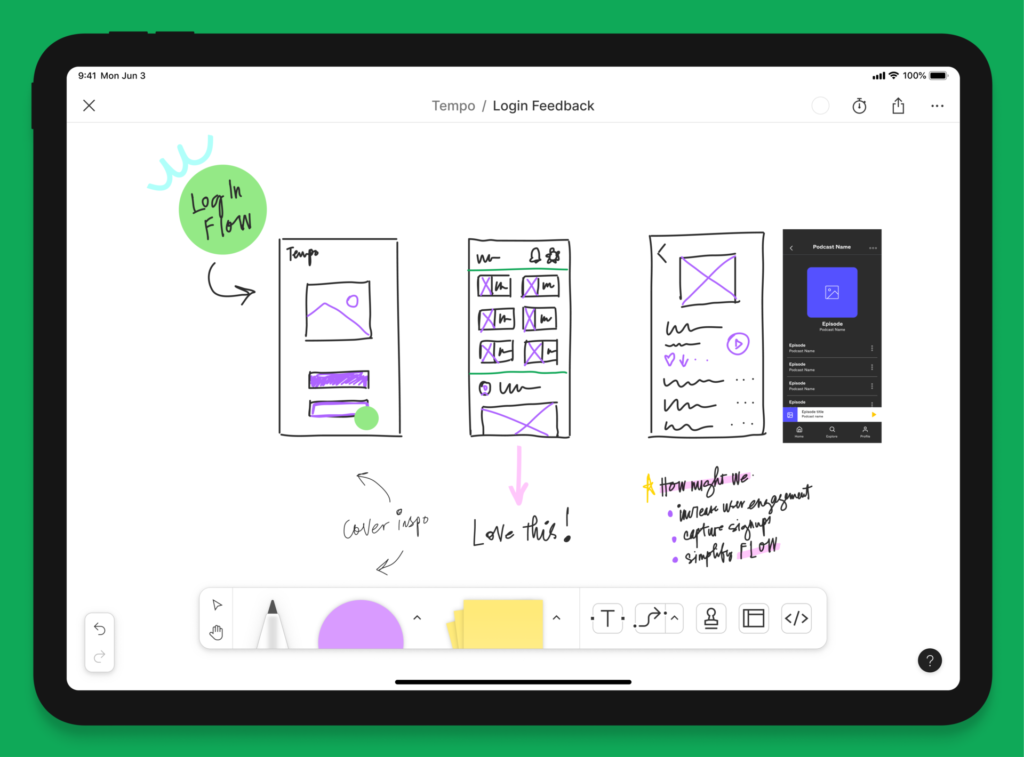 Figma is a great design tool for visual collaboration. FigJam is an online whiteboard that is especially useful for teams wanting to ideate around their Figma designs and collect all their online collaborations in one ecosystem.