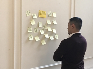 This introvert-friendly brainstorming technique helps groups of any size to generate and build on each other's ideas in a silent but dynamic setting. As the participants keep moving, the exercise is ideal to kick-off a full day workshop or re-energize the group after lunch.